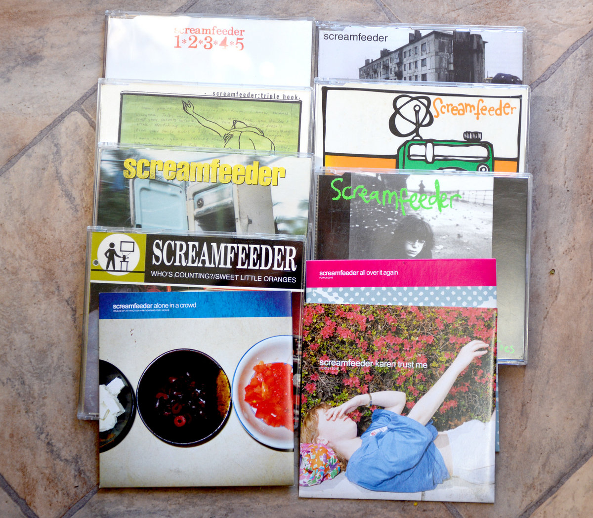 10 original CD singles: Ice Patrol // Static // Fingers & Toes // Karen Trust Me // All Over It Again // Alone In A Crowd // Who's Counting - Sweet Little oranges // Fill Yourself With music // Triple Hook // 12345